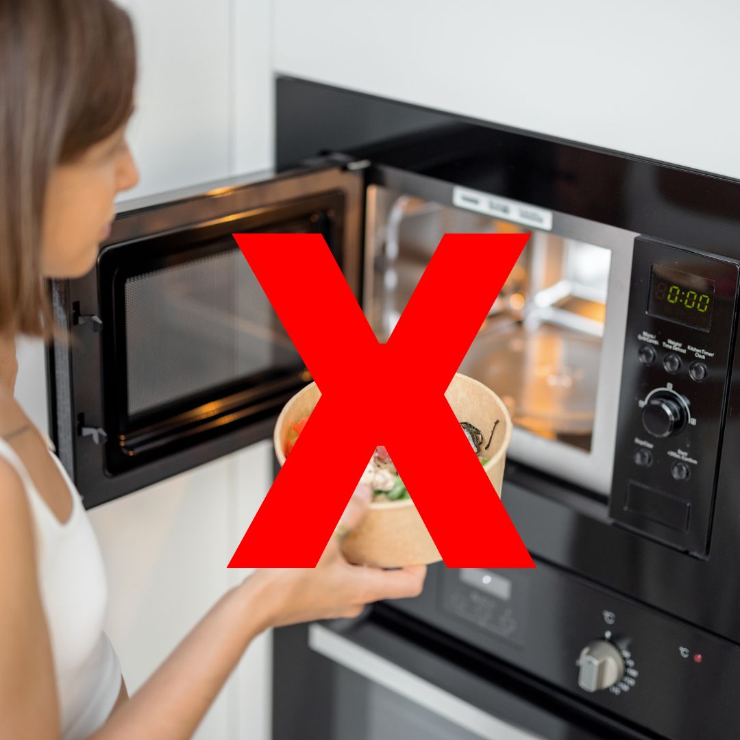 For reheating food, transfer contents to a microwave-safe glass or ceramic container before placing it in the microwave.