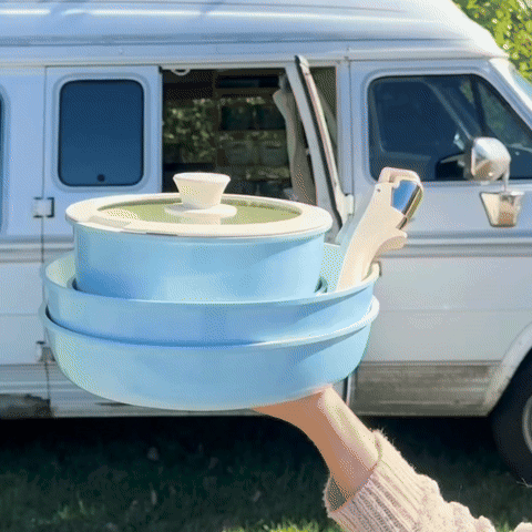 With detachable handles and stackable pieces, multiple pans and pots store as one, making it easier to bring along for picnics, camping, or RV travel.