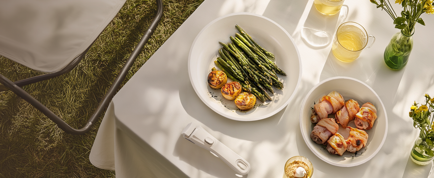You don’t carry extra pieces. You carry the same cookware you trust at home.