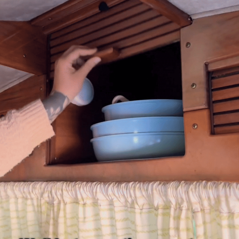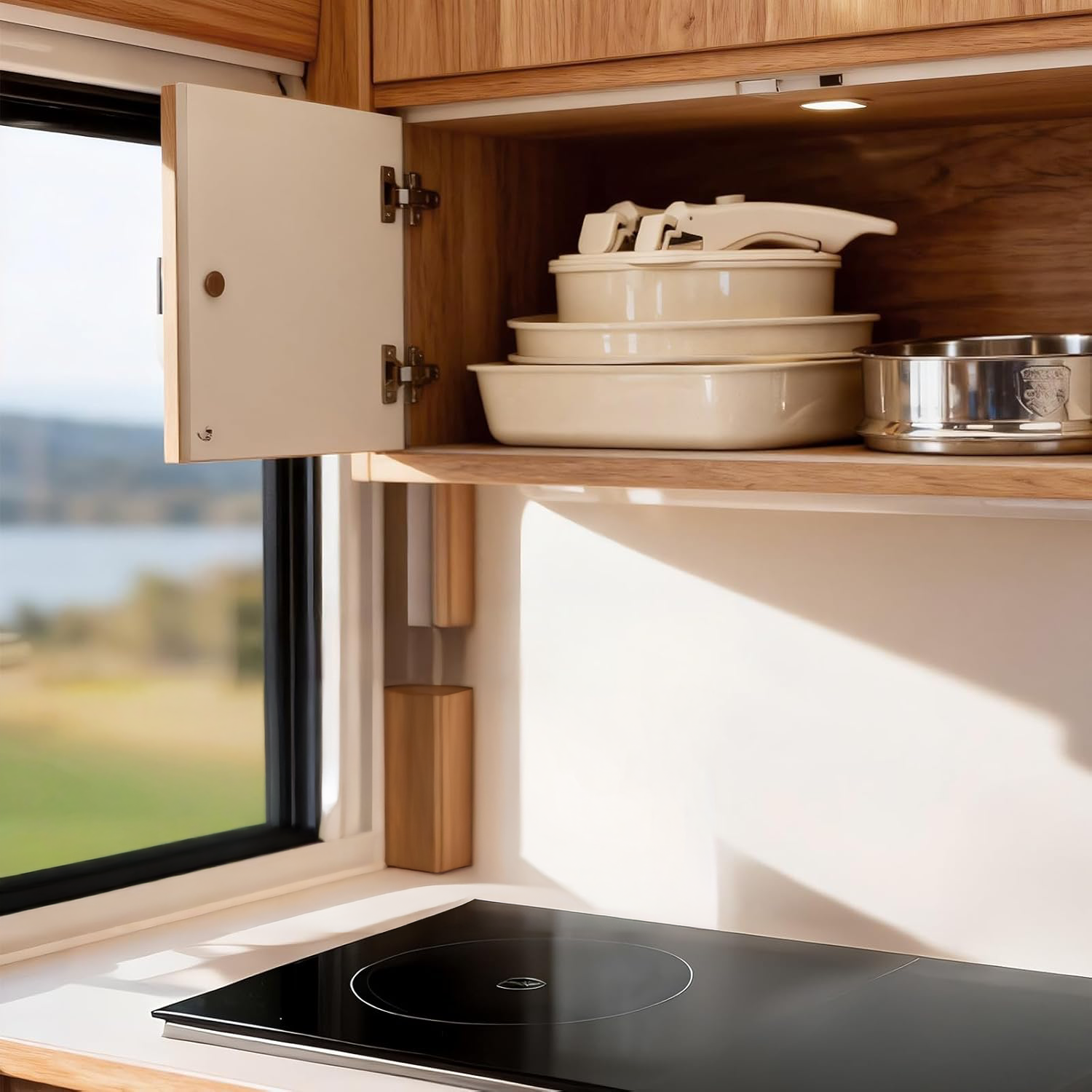 Space saving when stored, fully capable when cooking. Perfect for small kitchens, campers, and RV living. Stack them away in seconds for a clutter free kitchen or RV setup.