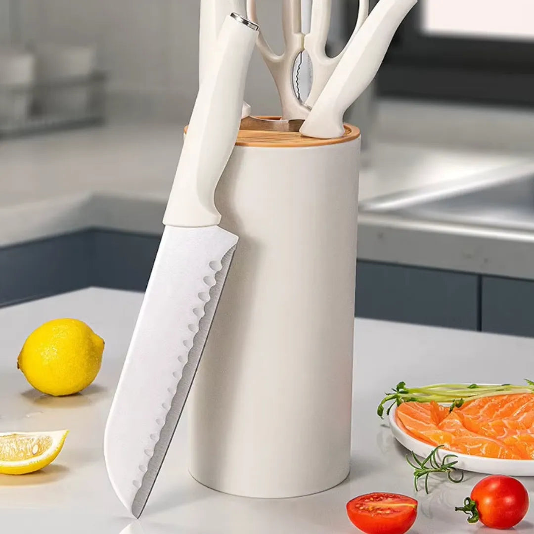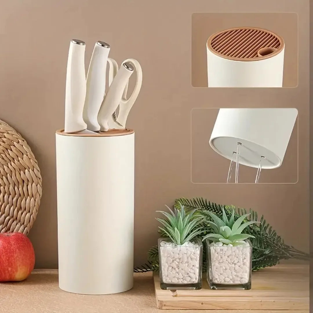 Features a space-saving knife holder with drainage holes for quick drying, easy to clean, tidy, and beautifully displayed.
