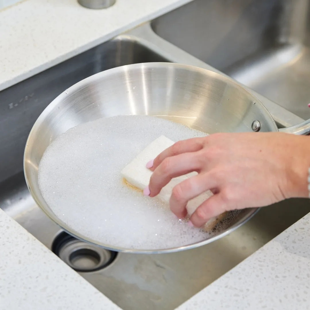 Advanced passivation creates an ultra-smooth surface that resists buildup. Most messes wipe away with warm soapy water. Dishwasher-safe when you want a deeper reset.