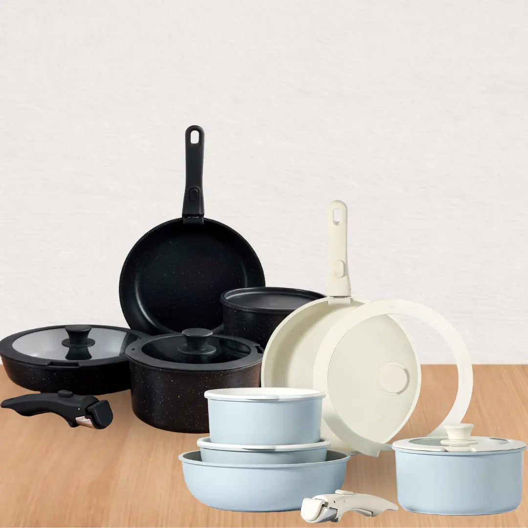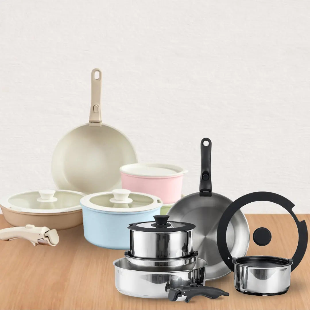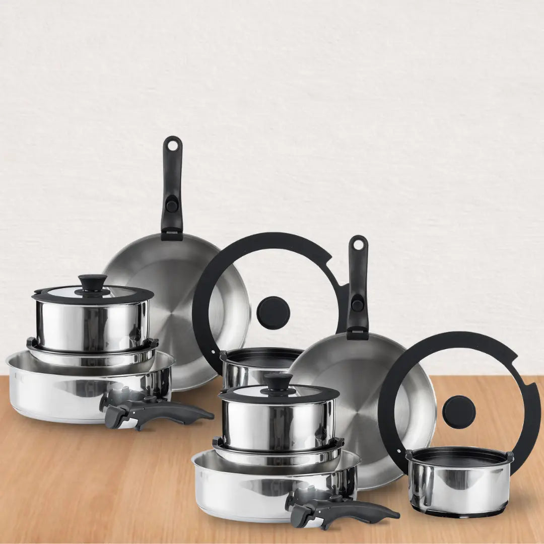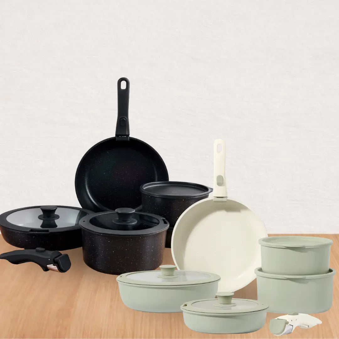 Unlike normal cookware that's impossible to set, these pans fit perfectly into each other allowing you to store it neatly in a compact space without taking up much room.