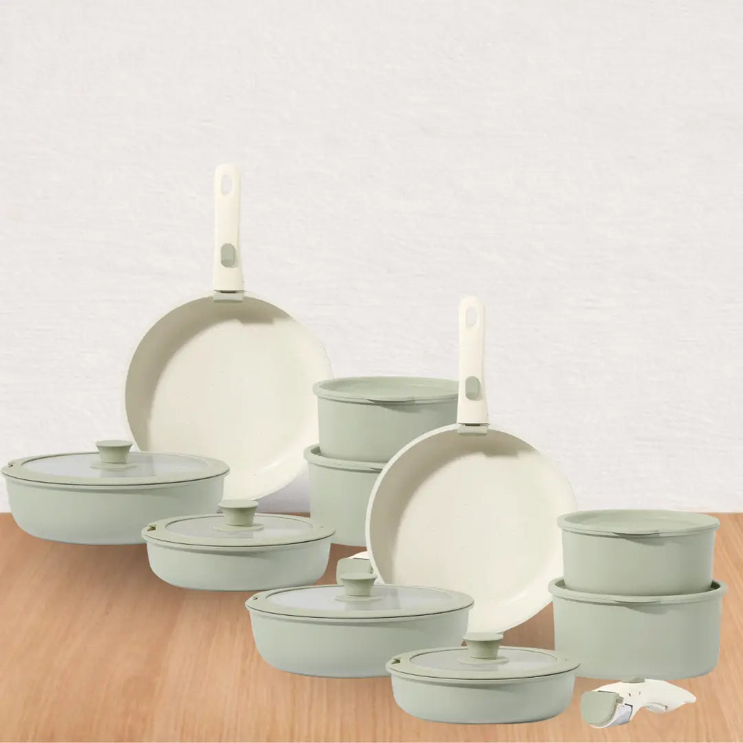 We’ve bundled our best-selling ceramic cookware set into a special double bundle. Designed to make everyday cooking easier, healthier, and more organized with durable ceramic non-stick performance and a smart, space-saving kitchen setup.