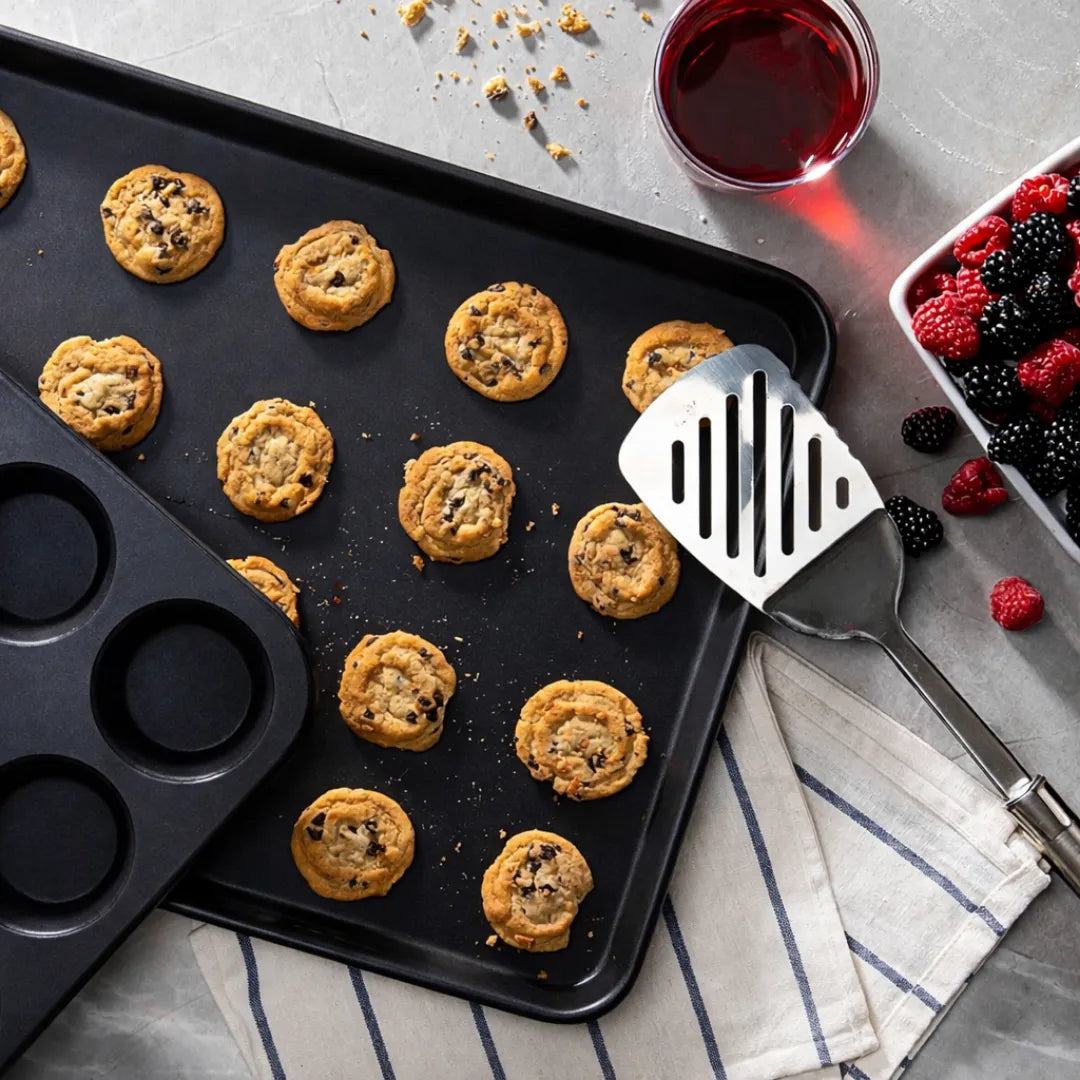 Perfect for baking cookies, muffins, loaves, and more - each pan is oven-safe up to 450°F, helping you tackle every recipe with confidence.