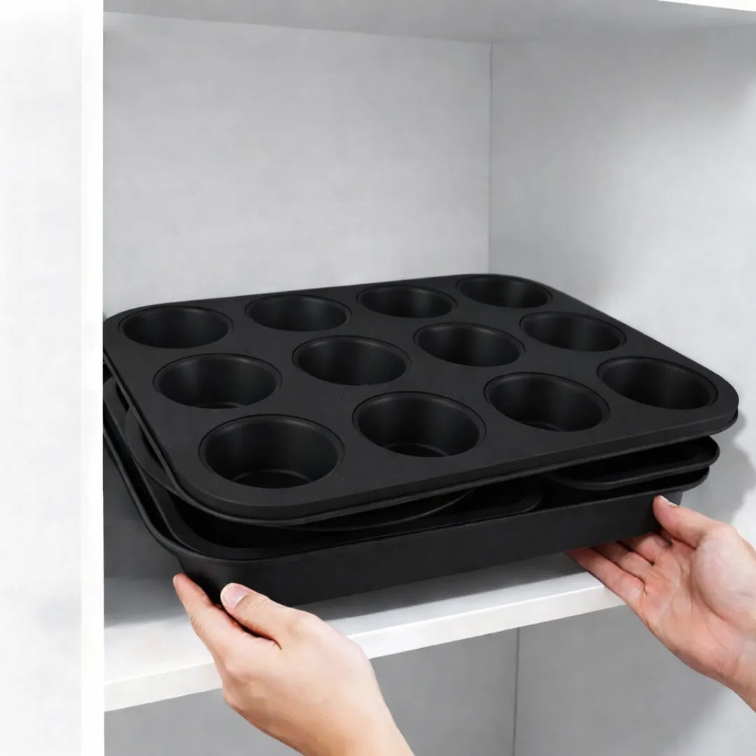 This complete 5 piece bakeware set includes all the essential pans you need for everyday baking and cooking. Every piece is designed to cover your baking needs and is oven safe up to 450°F (232°C), from cakes and bread to muffins, brownies, and savory dishes.