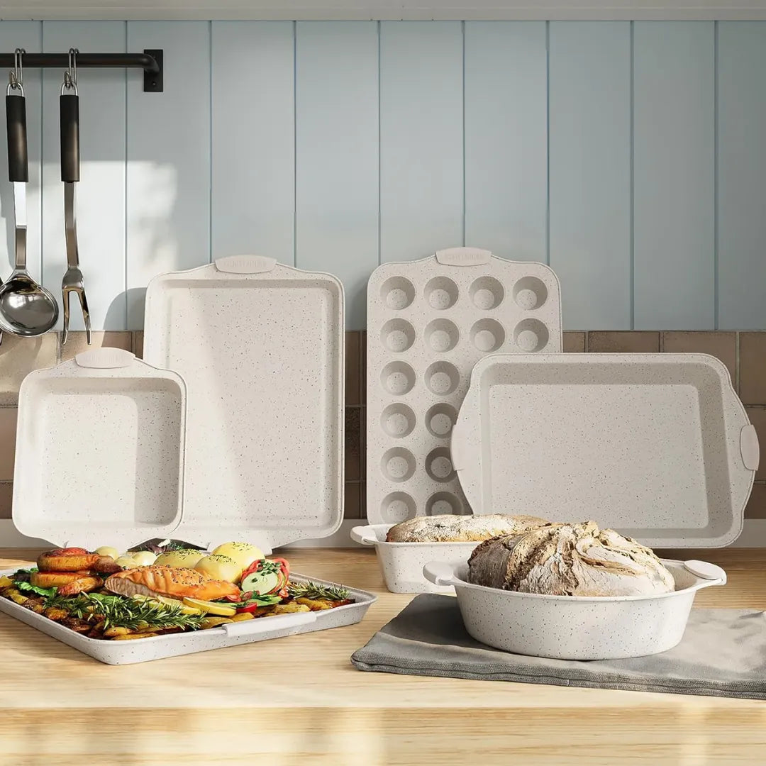 10-piece ceramic-coated bakeware set, thoughtfully designed for every baking need.