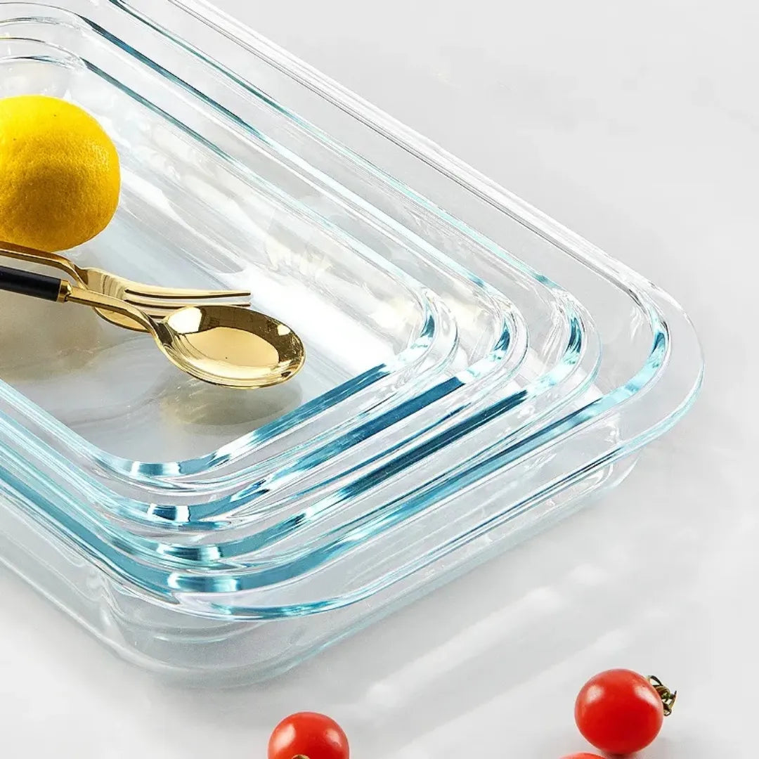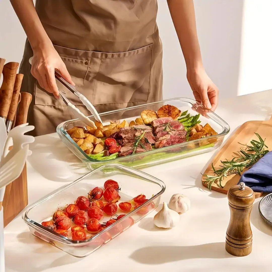 Each piece in the Glass Baking Dish Set is made from heat-resistant borosilicate glass with BPA-free lids for secure and easy storage.