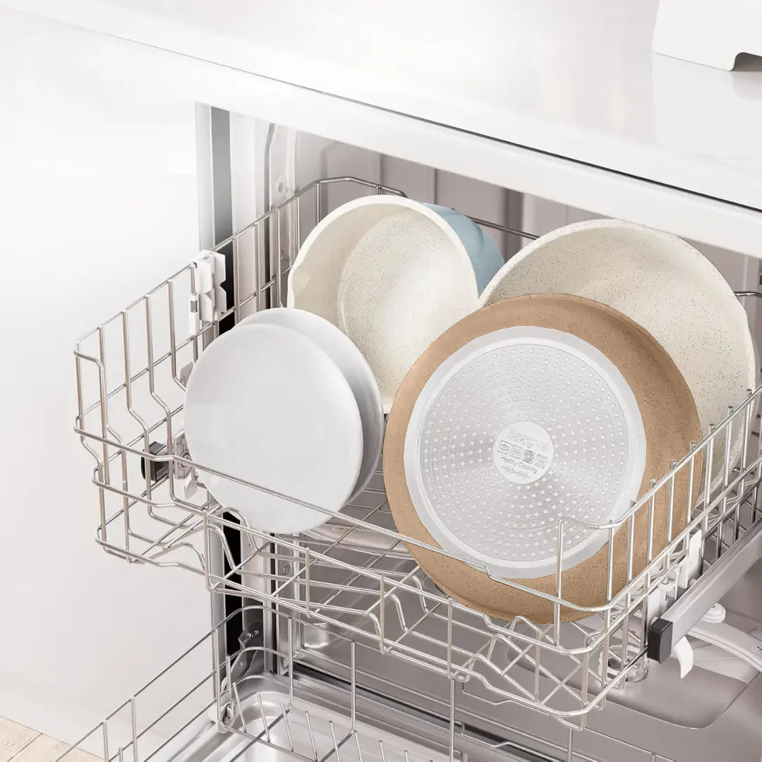 It makes cleaning effortless, saving time and water. Plus, all pieces are dishwasher safe.